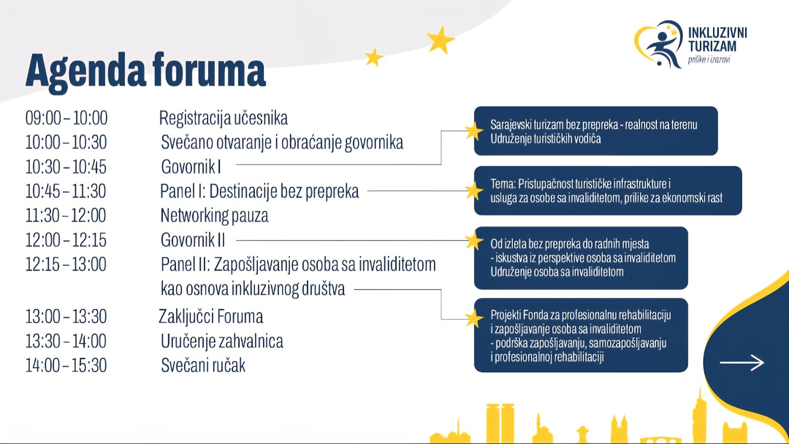 Cilj foruma je jasan: pozicionirati Sarajevo kao destinaciju bez prepreka i stvoriti prostor u kojem kroz saradnju i otvoren razgovor gradimo nove prilike i partnerstva.